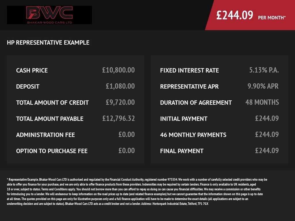 | Monthly Payment | £244.12 p/m* x 46 |